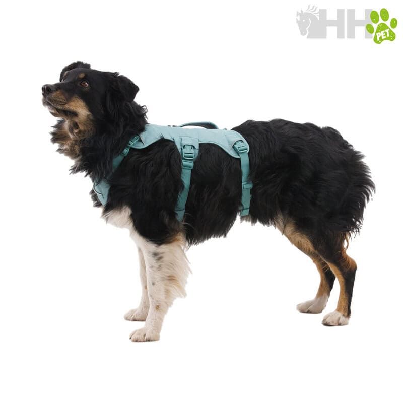 El asa reforzada proporciona un soporte seguro y equilibrado para asistir en maniobras o levantar al perro en terrenos técnicos, mientras que el panel posterior de espuma perforada aporta estructura transpirable sin añadir peso innecesario. Con cuatro puntos de ajuste, se adapta de forma segura a diferentes morfologías. Su diseño de tres correas lo convierte también en una gran opción para perros escapistas tipo Houdini.