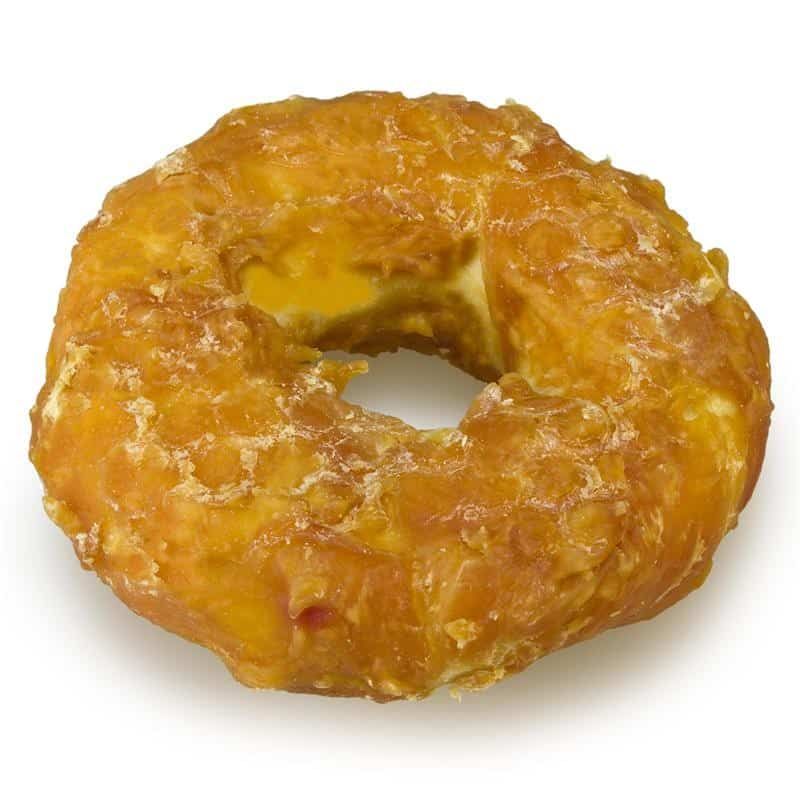 Anillo de croquetas de pollo en empaquetado de vacío con caja de transporte. Aros Masticables Con Pollo 24 Uds./ 200Gr.