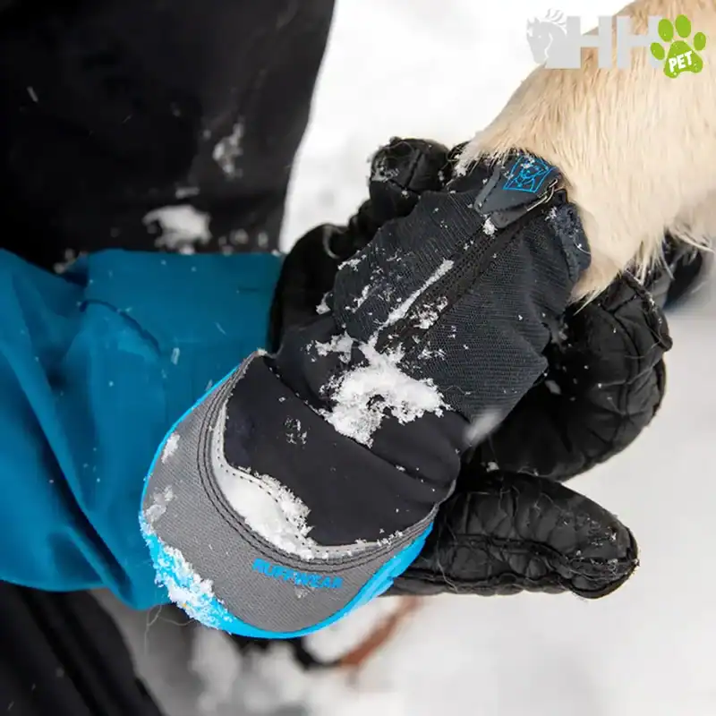 Su parte superior de softshell aislado ofrece calidez transpirable, resistente a la intemperie y cómoda incluso en climas fríos y con nieve. La suela de Vibram® Icetrek™, diseñada por Ruffwear, proporciona un agarre firme en superficies heladas, actuando también como barrera protectora frente al frío y los productos químicos utilizados para derretir la nieve.