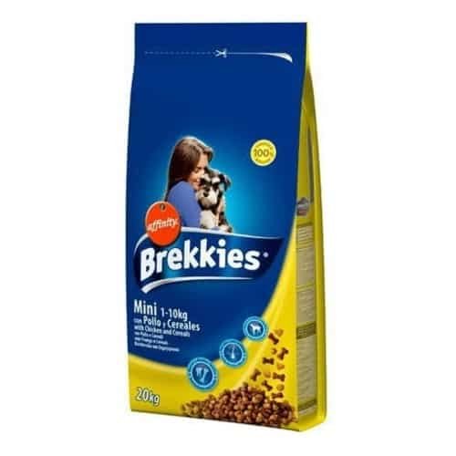 Perro con comida para mascotas Brekkies en paquete de 3 kg.Brekkies Adult Mini 20 Kg.