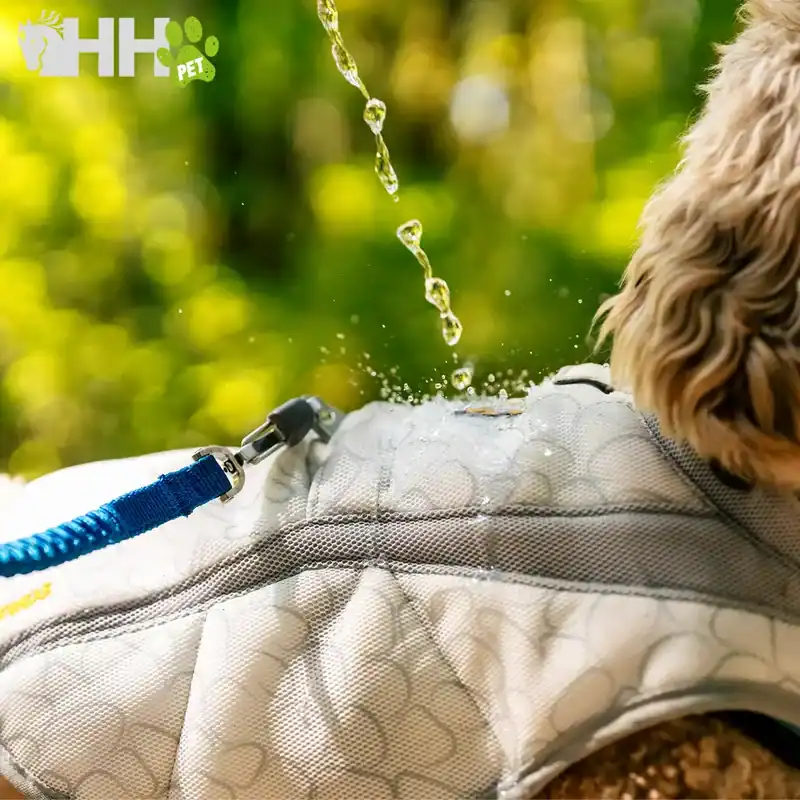 Además, cuenta con detalles reflectantes para mejorar la visibilidad en condiciones de poca luz y un bucle para fijar una luz LED de seguridad, como el accesorio The Beacon™. Se recomienda empapar el chaleco con agua fría, escurrirlo y colocarlo en el perro; a medida que se seca, se vuelve a mojar para mantener el efecto refrescante.