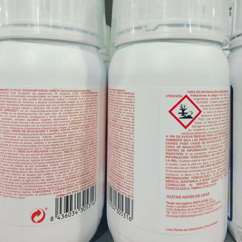 Esta solución insecticida y acaricida de amplio espectro, formulada con cipermetrina y baja toxicidad, es ideal para el control eficiente de insectos voladores y rastreros en instalaciones ganaderas de aves, cerdos, rumiantes y conejos, así como en vehículos de transporte, mataderos e industrias alimentarias. Su potente efecto de choque garantiza resultados rápidos; además es económica, segura para personas y animales, y recomendada por expertos en bioseguridad.