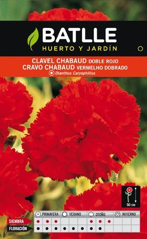 Clavel Chabaud doble rojo para jardín y huerto, ideal para flores y ornamentación. Clavel Chabaud Rojo Sobre