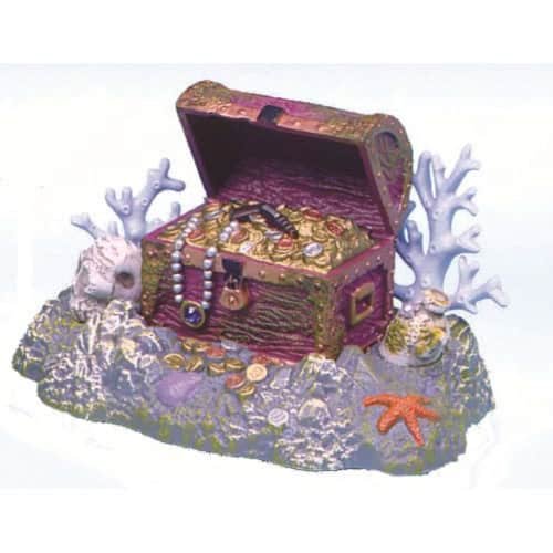 Además, esta decoración no solo es cautivadora para la vista, sino también beneficiosa para la salud de tus peces. Las burbujas que emite el cofre del tesoro ayudan a oxigenar el agua, lo que es vital para la salud y el bienestar de tus pequeños nadadores.