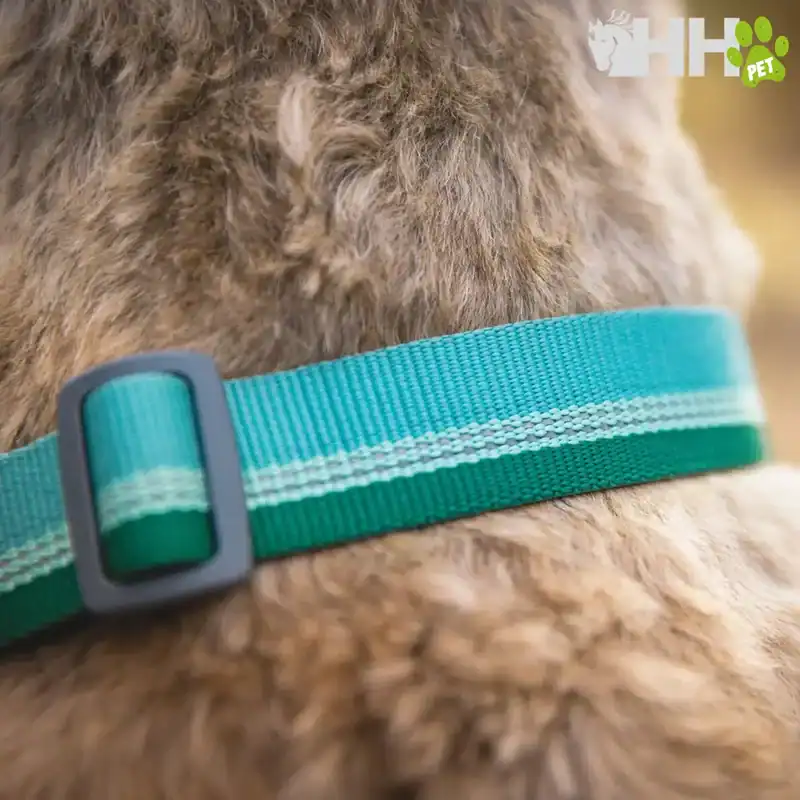 Chain Reaction™ Collar: collar martingala con cadena corta de acero inoxidable y cinta reflectante Tubelok™. Seguro, resistente y pensado para perros escapistas.
