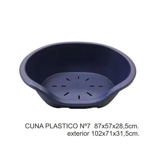 Cuna plástica para mascotas, resistente y práctica para el cuidado de animales.Cuna Plastico Nº6 77X50X27Cm.