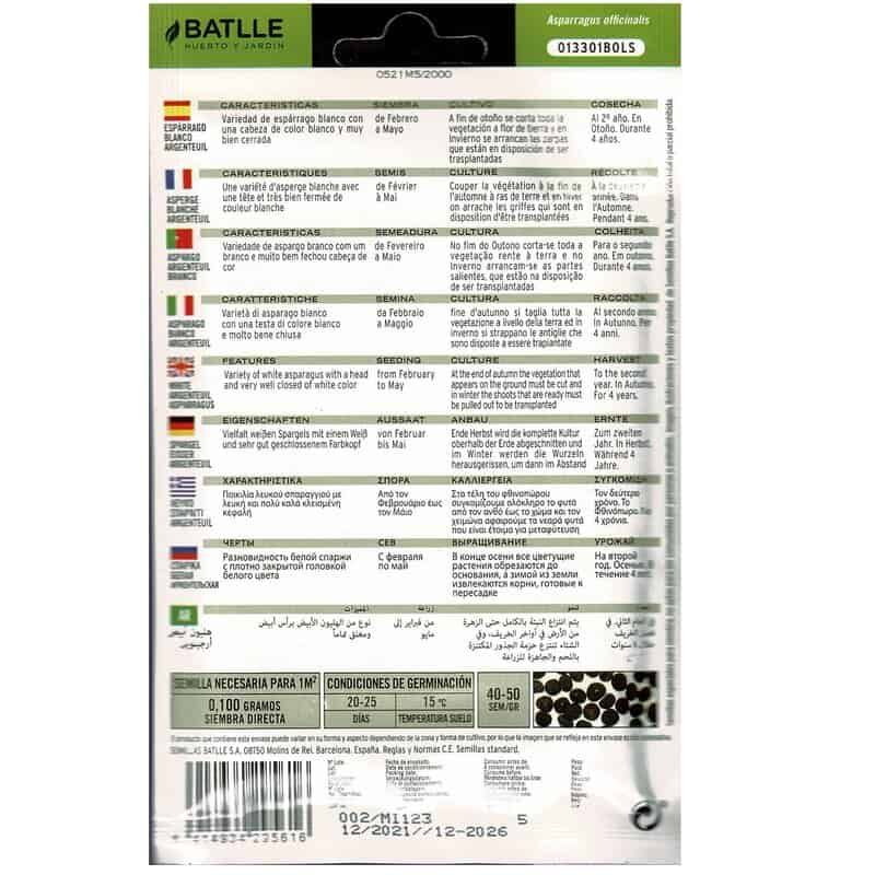 Espárragos verdes de Argenteuil en paquete para huerto y jardín. Calidad y frescura para cultivo ecológico. Esparrago Blanco Argenteuil Sobre
