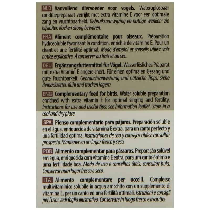 Este producto es mucho más que un suplemento, es una fuente completa de vitaminas, aminoácidos y oligoelementos. Diseñado especialmente para ofrecer un soporte nutricional excepcional cuando las aves lo necesitan más: durante la reproducción y la muda.
