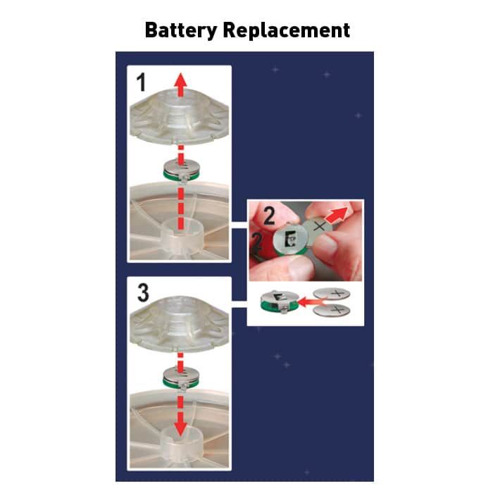 Baterías fácilmente reemplazables, protegidas bajo una tapa resistente a los mordiscos.