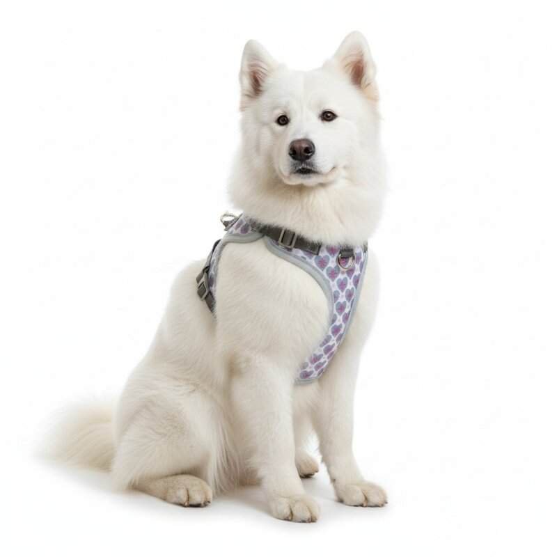 El chaleco 3D corazones T-S está fabricado en algodón de alta calidad, diseñado para proporcionar transpirabilidad y comodidad a las mascotas durante sus paseos. Su estructura permite una adecuada adaptación a la temperatura y necesidades específicas del animal, evitando irritaciones. Incorpora un cierre metálico que asegura una sujeción firme, garantizando la seguridad del animal en todo momento. Este chaleco es adecuado para su uso en diversas condiciones climáticas y está disponible en varias tallas, lo que permite una correcta elección según las medidas del pecho y cuello de la mascota. Se recomienda seguir las instrucciones de lavado para mantener la calidad del producto.