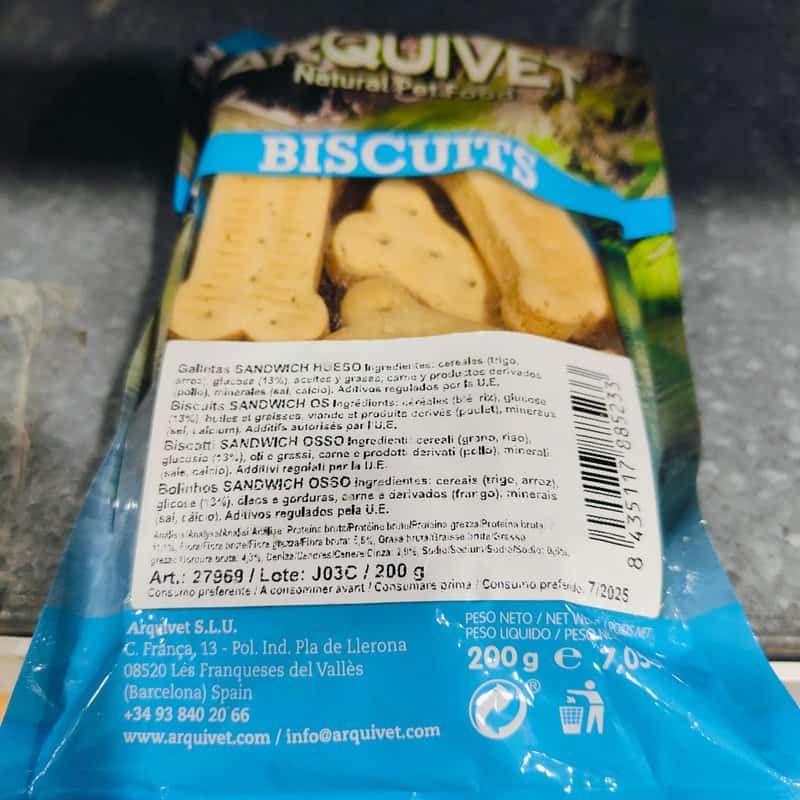 Siguiendo altos estándares de calidad, nuestras GALLETAS SANDWICH HUESO son fabricadas sin conservantes ni colorantes artificiales. Su tamaño es perfecto para todos los tamaños de perro, desde el más pequeño hasta el más grande.