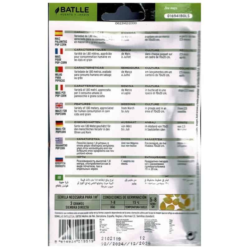 Disfruta la experiencia de cultivar tus palomitas con las semillas de maíz Pop Corn. Perfectas para horticultores de todos los niveles.