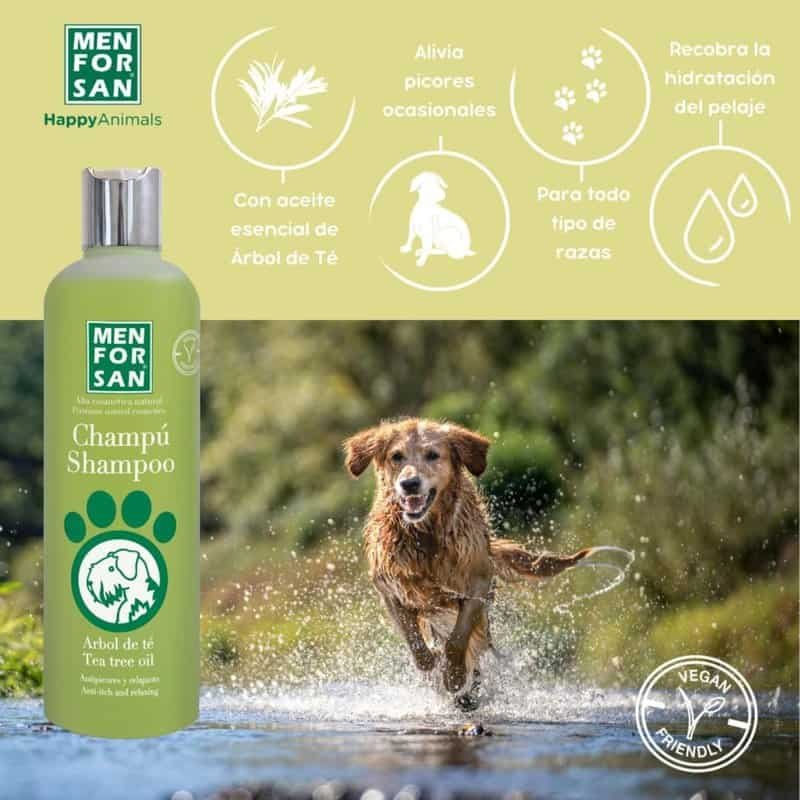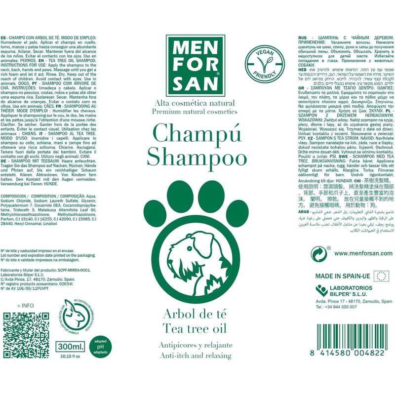 MENFORSAN CHAMPU ARBOL DE TE 300ml, el secreto para un pelo sano y deslumbrante en tu mascota.