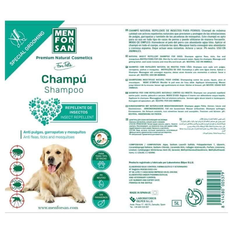 MENFORSAN CHAMPU REPELENTE C/Citronela ofrece una protección duradera contra parásitos e insectos a su mascota.