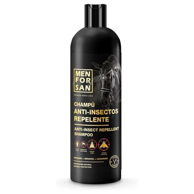 «Mantén a tu caballo a salvo de los insectos con MENFORSAN CHAMPU REPELENTE. ¡Salud e higiene garantizada!»