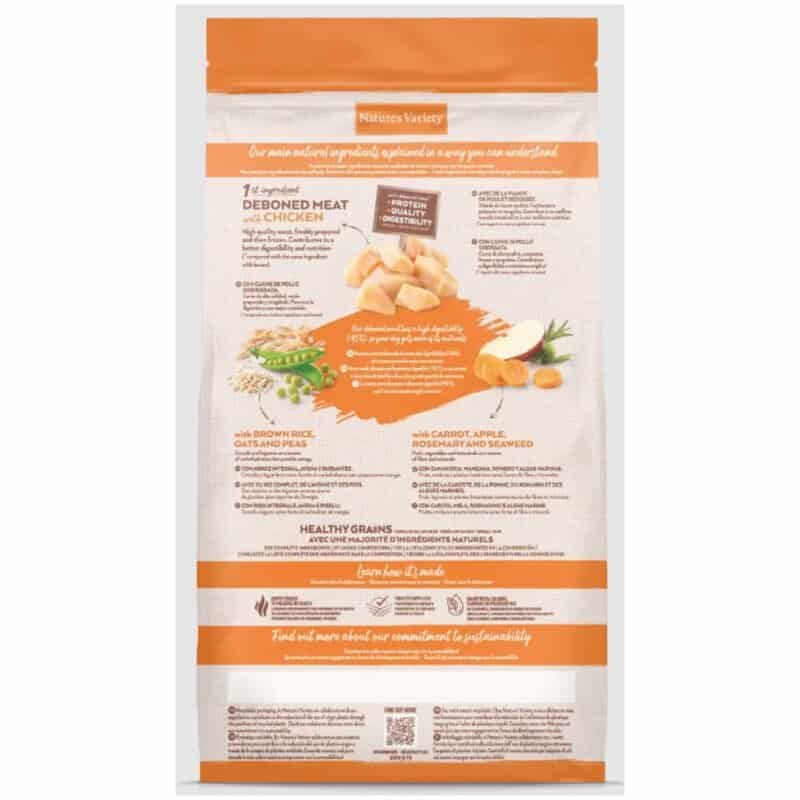 Además de pollo, NATURES VARIETY HEALTHY GRAIN MINI POLLO también contiene granos saludables en su composición. Los cereales integrales se han elegido específicamente por su alto contenido de fibra, necesarios para regular el sistema digestivo de su mascota y ayudarla mantener un peso saludable. Por otro lado, los granos también proporcionan energía duradera, manteniendo a tu mascota activa y animada a lo largo del día.