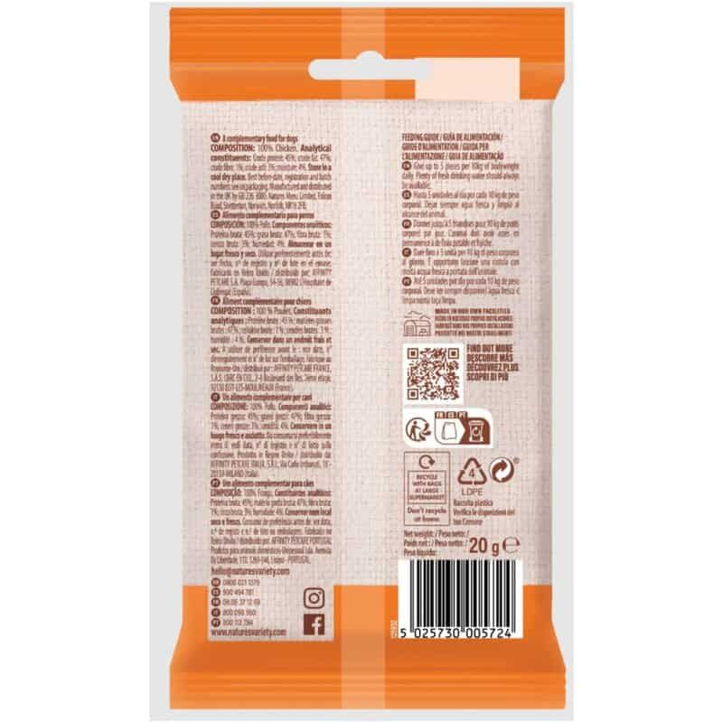 ¿Por qué Natures Variety Meat Bites Pollo? Cada bocado está cargado de un sabor auténtico a pollo que tu mascota amará. Pero más allá de su sabor, estos snacks son altamente nutritivos, con un contenido de proteína cruda que promueve el crecimiento y desarrollo saludable de tu mascota.
