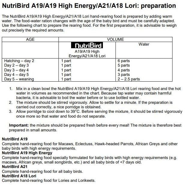 Este alimento está enriquecido con proteínas, aminoácidos esenciales y contiene una cantidad equilibrada de vitaminas y minerales, proporcionando a tu mascota todos los nutrientes que necesita para crecer sana y fuerte. El bienestar de tu mascota es nuestra prioridad, y con la NUTRIBIRD A19, lo tenemos garantizado.
