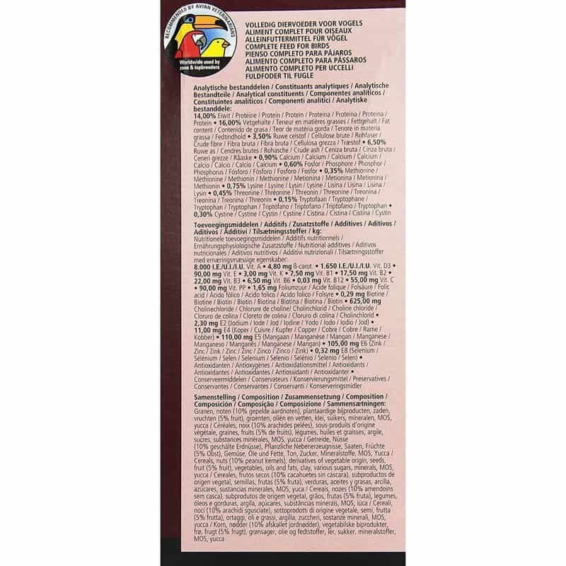 Combinando una rica fuente de proteínas, vitaminas y minerales, esta fórmula ha sido especialmente diseñada para cumplir con todas las necesidades nutricionales de su querido pájaro. Su preparación única no sólo abunda en nutrientes, sino que además tiene un sabor delicioso que atraerá incluso a las ave más exigentes.
