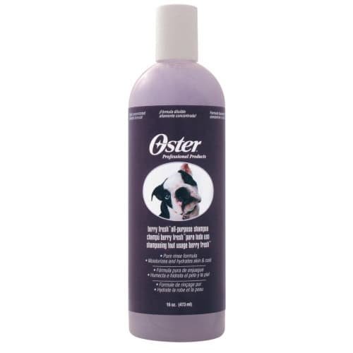 Tu mascota disfrutará de un pelo brillante y sano con el champú hidratante Oster de bayas silvestres.