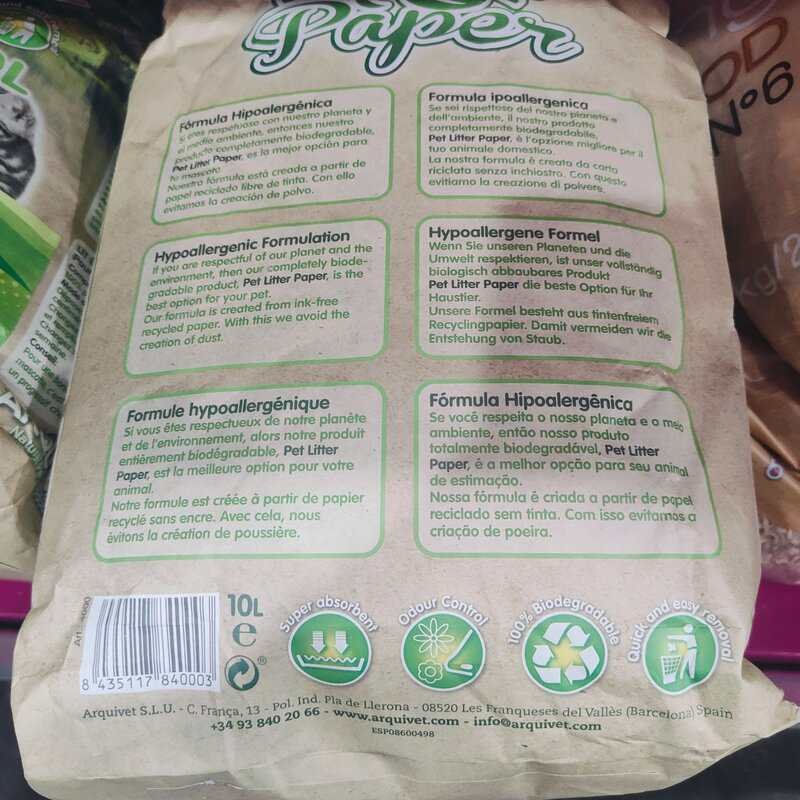Con su composición de papel 100% reciclado, el Papel Arquipaper 10 LTS contribuye a la reducción del impacto medioambiental. Es un producto biodegradable y ecológico, perfecto para quienes buscan productos responsables con el medio ambiente y que al mismo tiempo aporten al cuidado y bienestar de sus animales.