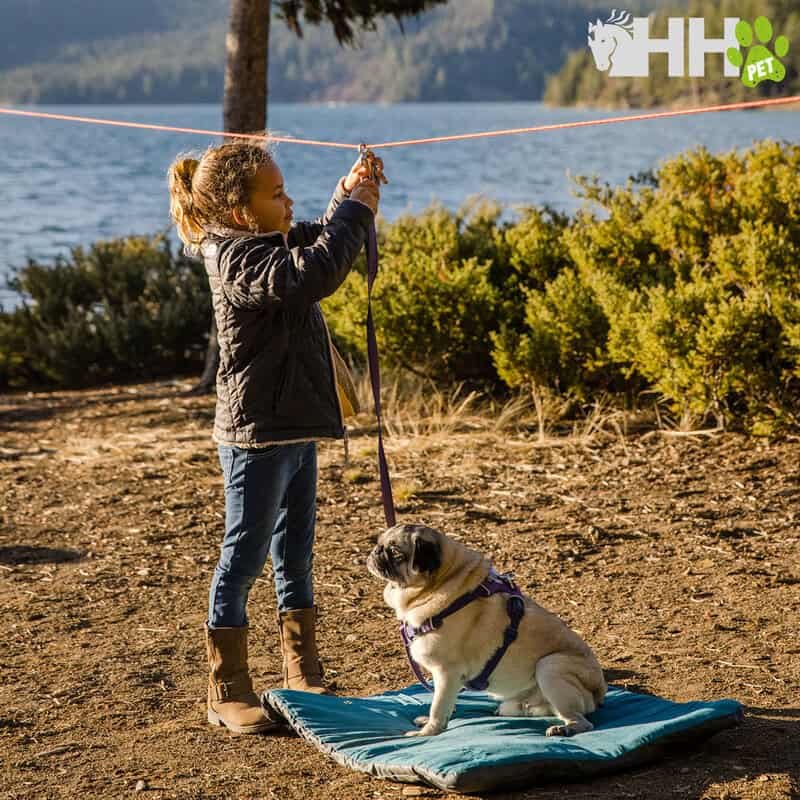 El Knot-a-Hitch™ es un sistema de enganche para perros diseñado para el campamento, inspirado en la escalada, que permite a tu perro deambular con seguridad por el entorno sin dejar de estar atado.
