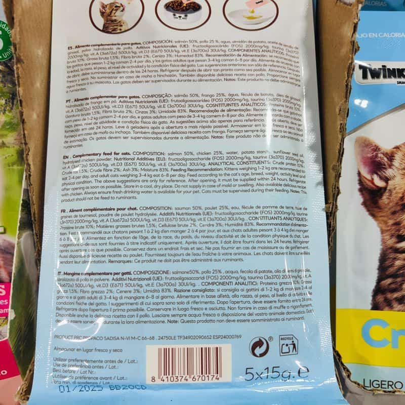 Si bien mantener una alimentación adecuada es esencial para la salud de tu gato, ¿por qué no hacer la hora de la comida aún más emocionante? Con el delicioso y nutritivo Snack CREMA con Salmon 5x15gr.Gatos, puedes transformar las comidas de tu mascota en momentos de puro placer.