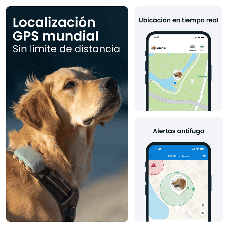 Configura zonas seguras (como tu propiedad) y zonas prohibidas (como el jardín de los vecinos). Recibirás una alerta si entra o sale de alguna de ellas.