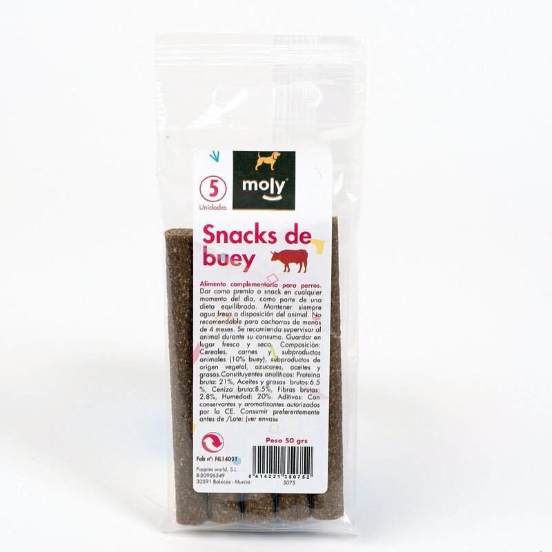 Snacks de Buey en Barritas 50 g Moly | Premio Natural y Sabroso para Perros