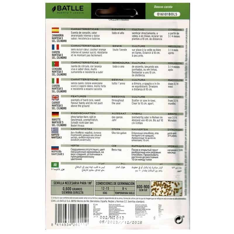 Descubre el sabor auténtico con las semillas Zanahoria Nantesa 5S.Cilindro. Perfectas para cultivar en casa y disfrutar de unas suculentas zanahorias.